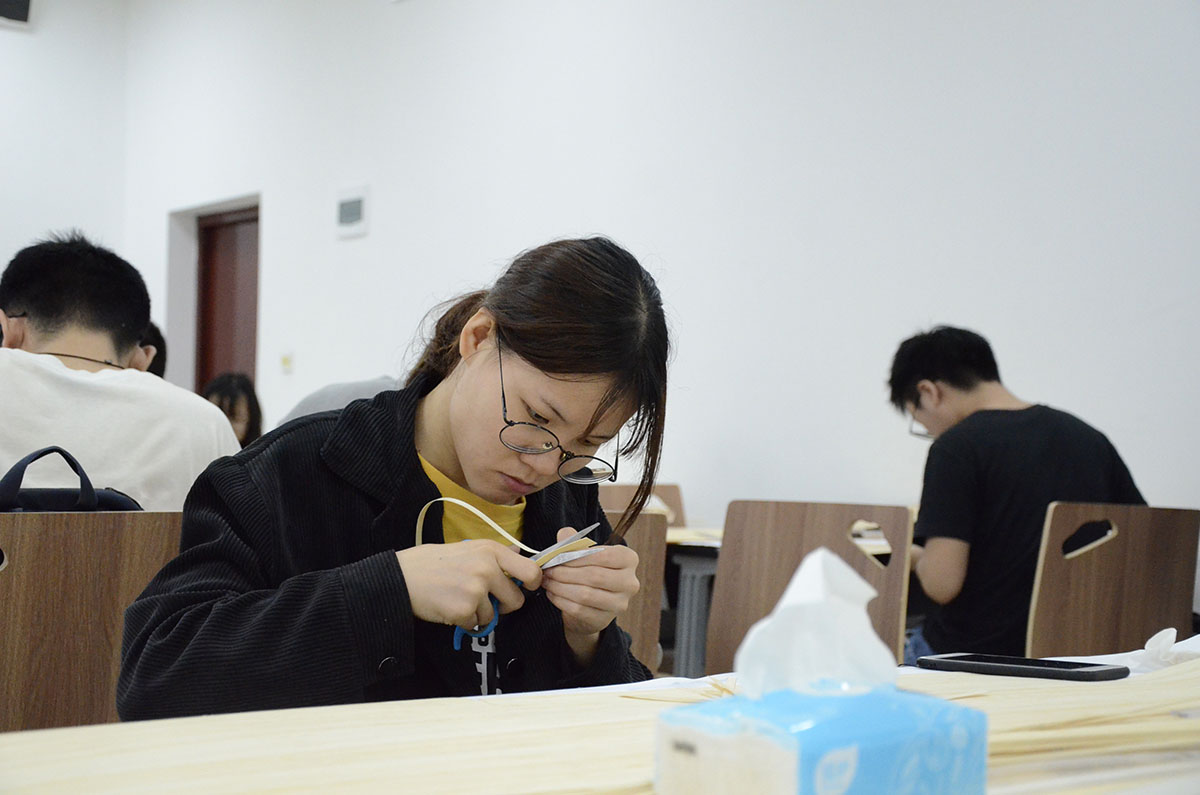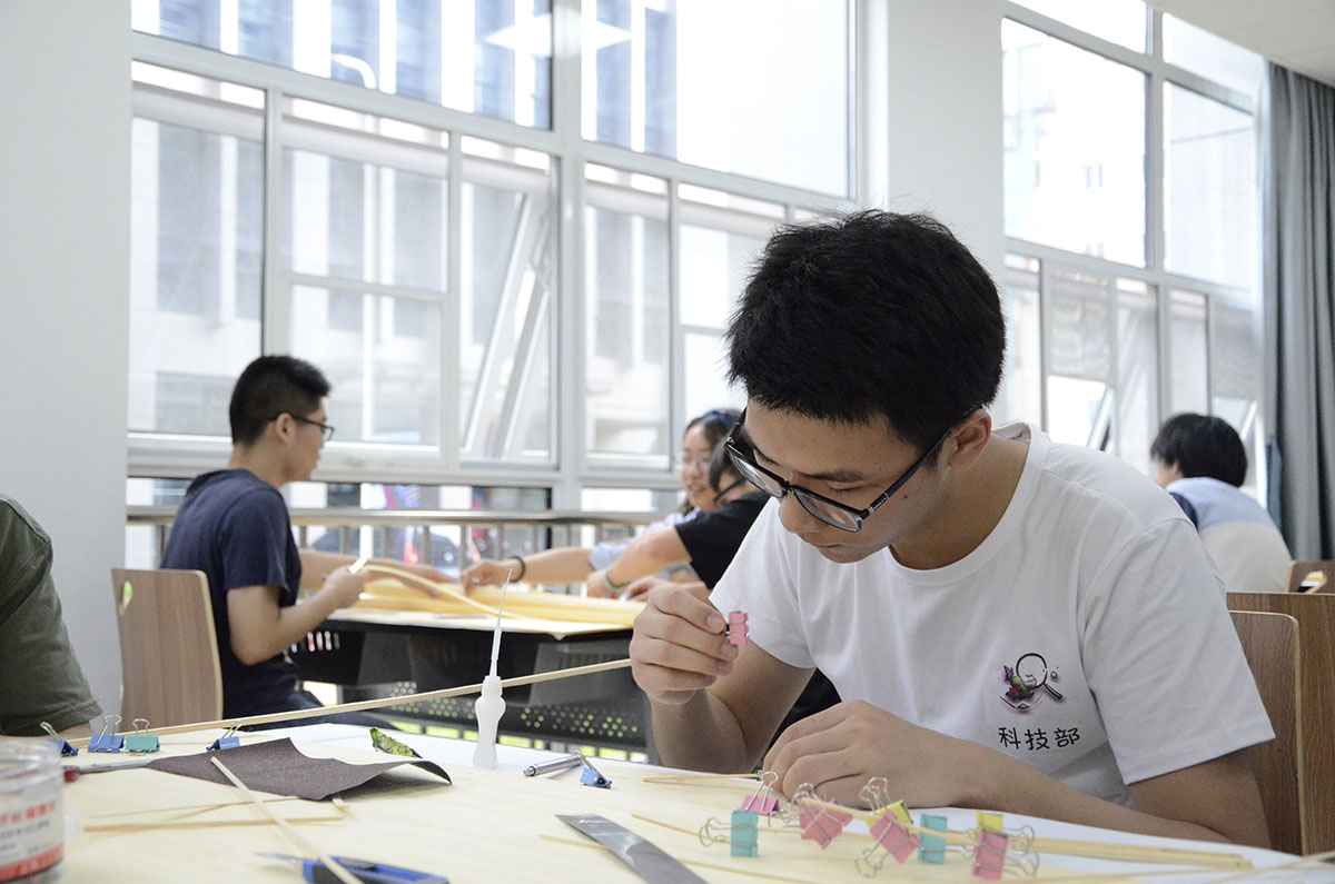 与此同时,13支结构类团队要求在一天时间内,使用竹皮、竹杆等材料,在250mm×250mm的正方形区域内现场制作出山地输电塔模型,并进行加载。综合设计书、制作过程、加载表现评定成绩。不仅考察参赛队员的动手能力,也是对力学知识综合运用、团队分工协作能力的考验。