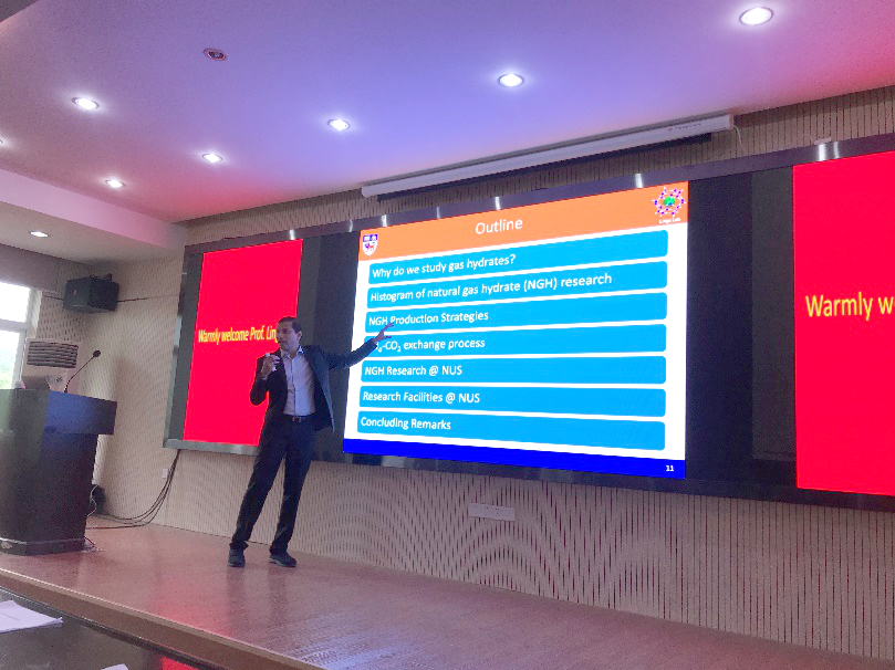 21日,Marcelo Sanchez教授对我校的诚挚邀请表示了衷心感谢,并紧紧围绕能源岩土力学领域的挑战和机遇进行了精彩报告。他详细介绍了能源岩土力学领域的多场耦合问题,提出了多场耦合问题的解决方法,并成功应用于水力压裂模拟、天然气水合物和地热开采等能源与环境领域。23日,Praveen Linga教授围绕天然气水合物这一未来清洁能源进行了精彩报告。详细介绍了天然气水合物的研究历程及其开采方式,重点展示了新加坡国立大学在天然气水合物研究方面所取得的重要进展。在学术报告的最后,Praveen Linga教授还与大家一起分享了高水平研究论文的撰写心得。