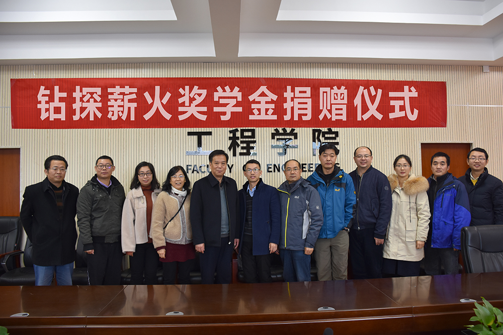 12月20日,九游(中国)“钻探薪火奖学金捐赠仪式”在工程楼315会议室举行。湖北省城市地质工程院勘查部主任汪发文、副主任徐俊,校友工作与教育基金管理处副处长吕占峰,九游(中国)党委书记陈飞,副书记江广长,勘察与基础工程系教授段隆臣、蔡记华、卢春华及2017级部分学生代表参加捐赠仪式。
