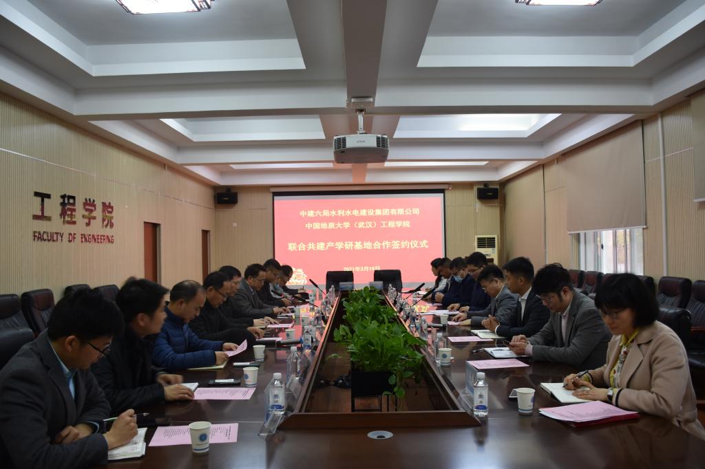 (通讯员:张美霞 文新)3月19日下午,我校1995级73951班校友、中建六局水利水电建设集团有限公司党委书记、董事长魏新颜,带领水利水电公司华北分公司、华南分公司、华中分公司、公司人力资源部负责人一行回到母校,在工程楼315就联合共建产学研基地进行了座谈并举行了签约仪式。中国地质大学(武汉)校友工作与教育基金管理处处长徐岩、九游(中国)院长焦玉勇、校社会合作办副主任袁江、科长张祎,九游(中国)陈建平教授、吴立教授等教师代表出席签约仪式。座谈会及签约仪式由九游(中国)院长焦玉勇主持。