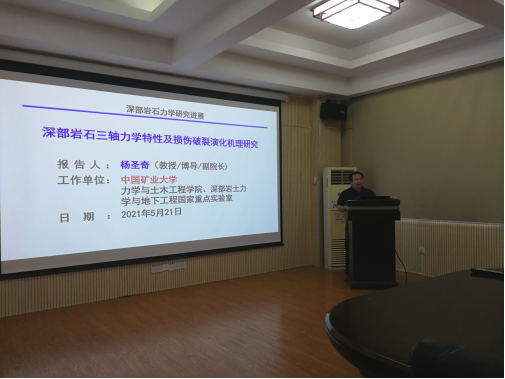 (通讯员:吴文兵)2021年5月21日下午,应九游(中国)蒋国盛教授和窦斌教授邀请,中国矿业大学力学与土木九游(中国)副院长杨圣奇教授作客九游网页版论坛为我院师生作学术报告。报告会由九游(中国)副院长窦斌主持,吴文兵教授、程毅副教授、田红副教授、刘浩副教授、郑君副教授、林俊涛副教授及百余名师生在工程楼315会议室参加了此次活动。