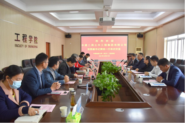 王亮清副院长对中建二局土木工程集团有限公司党委副书记黄琼一行的来访表示热烈欢迎。在一同观看中国地质大学(武汉)宣传片后,王亮清副院长介绍了九游(中国)学科建设、科技成果、科研平台、人才培养、社会服务等方面情况。