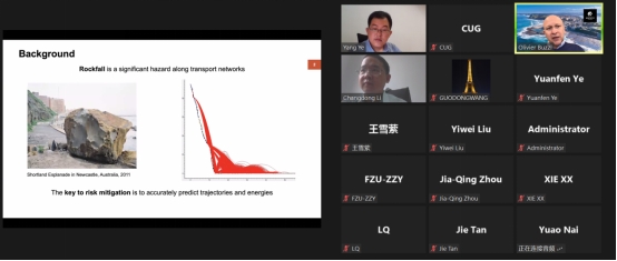 (通讯员:叶阳)2022年6月29日上午,应中国地质大学(武汉)唐辉明教授和叶阳特任教授邀请,澳大利亚纽卡斯尔大学Olivier Buzzi教授应邀作客2022年第6期“重大地质灾害预测与防控学科”111创新引智基地系列学术讲座。讲座采用Zoom在线会议形式,由叶阳特任教授主持,李长冬教授、张奇华教授、周佳庆特任教授、祝国强副研究员以及武汉大学、重庆大学、成都理工大学、西南交通大学、长安大学、中国地质调查局成都工艺所、昆明理工大学、三峡大学等多个单位50余名师生在线聆听了此次报告。