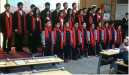 杨济源、王凯超、刘盼盼同三等奖获奖同学合影留念 | 附小小朋友合唱《歌唱祖国》 |